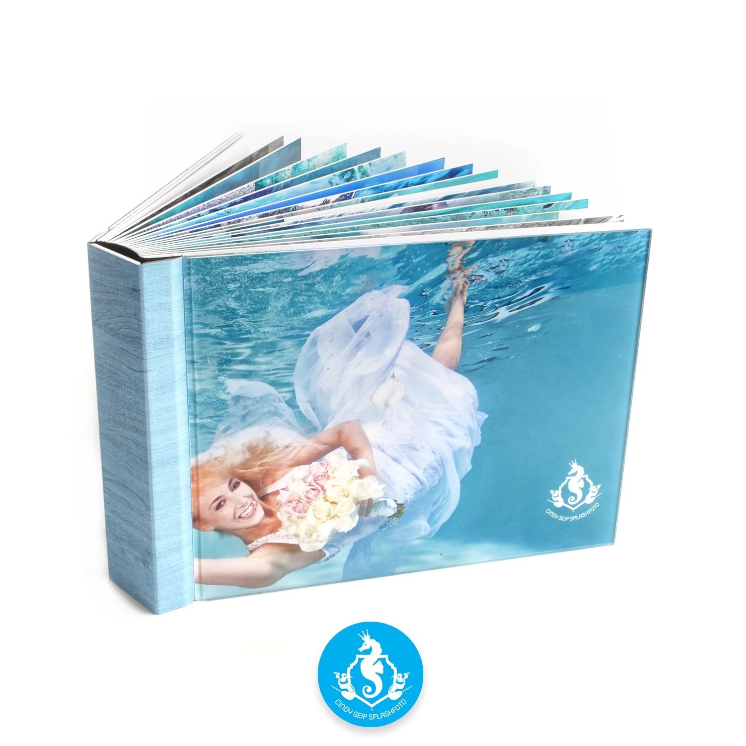 DETAILS: Each album comes with a beautiful box and includes a ribbon made of sateen to allow taking your album out easier. The crystal cover complements your underwater portrait and makes the liquid come alive. All pages have the “lay-flat” system and comes in a wide array of colors. The paper is a beautiful glossy metallic.